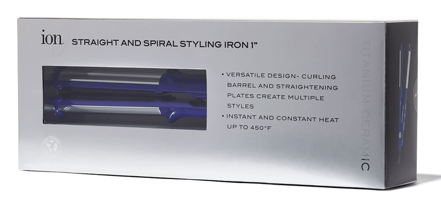 iON Straight N' Spiral Hair Styling Titanium Flat Iron, Black