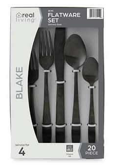 Real Living Blake Flatware Set, Matte Black (20 ct)