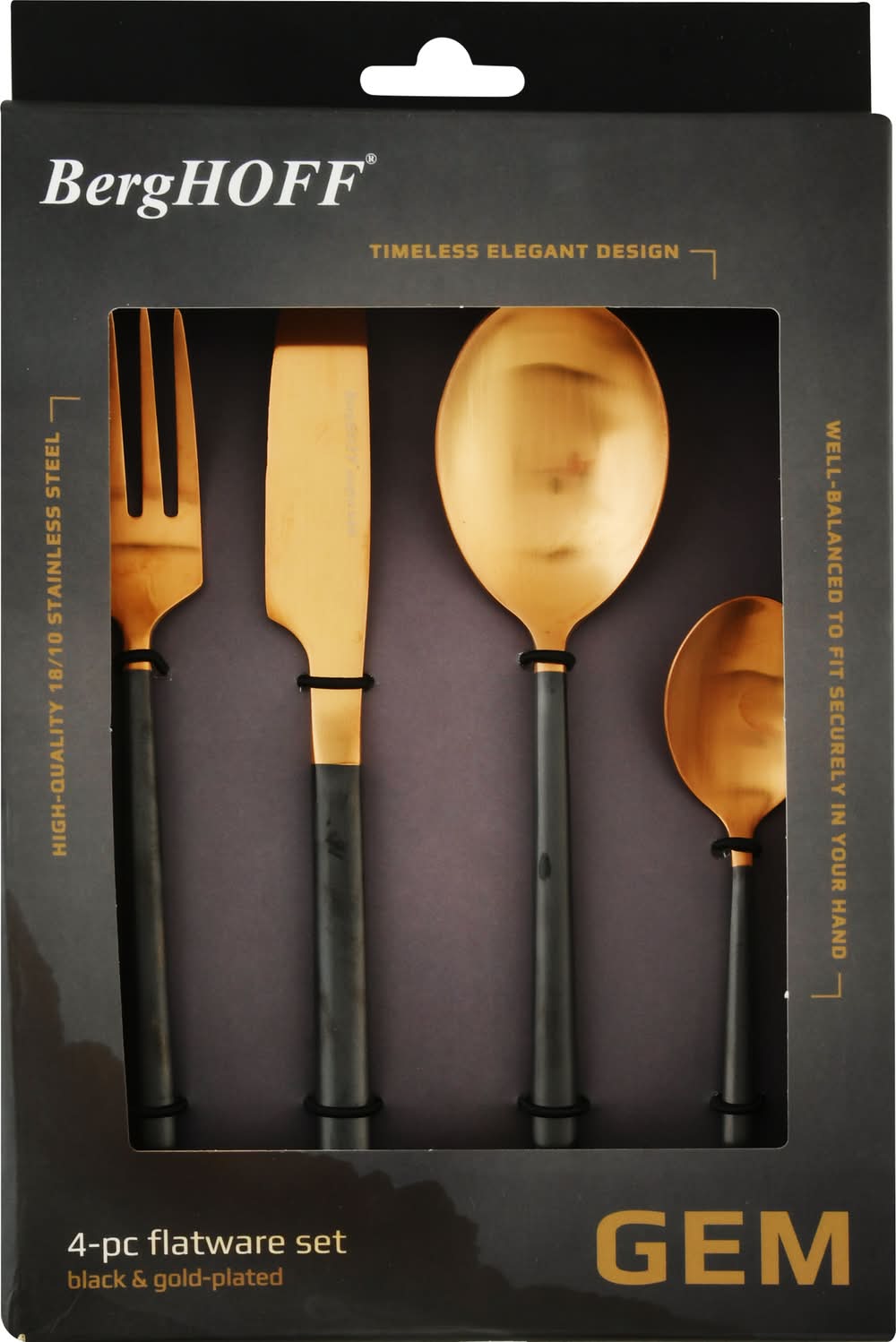 BergHOFF Gem Plated Flatware, Black & Gold (4 ct)