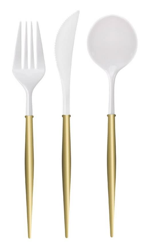 Party City Extra Durable Fun Cutlery Set, Gold-White (24 ct)