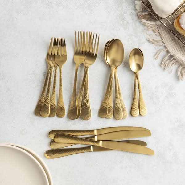 Hy-Vee Seasons Cobblestone Gold Stainless Steel Hammered Flatware Set (20 ct)