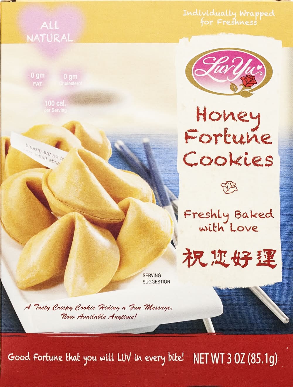 LUV YU Fortune Cookie, Honey (3 oz)
