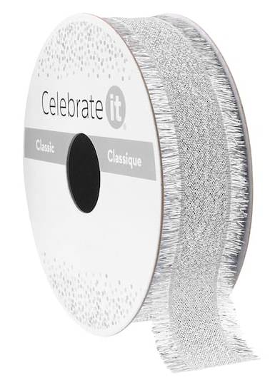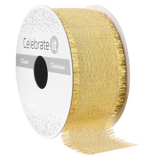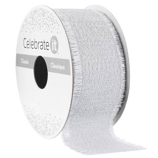 Celebrate It Frayed Edge Ribbon, 1.5 In x 3 yd, Metallic