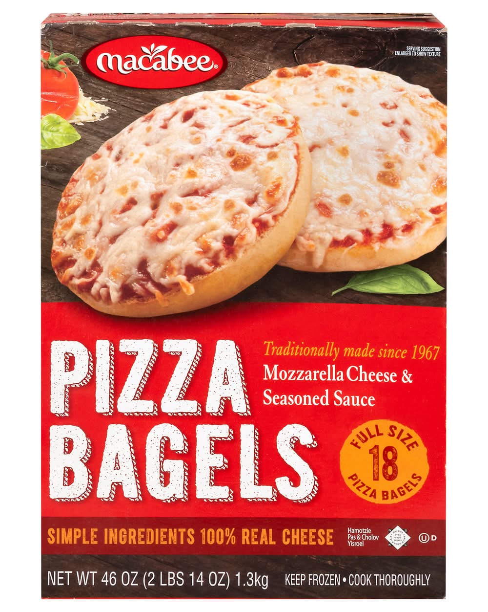 Macabee Mozzarella Cheese & Seasoned Sauce Pizza Bagels (46 oz, 18 ct)