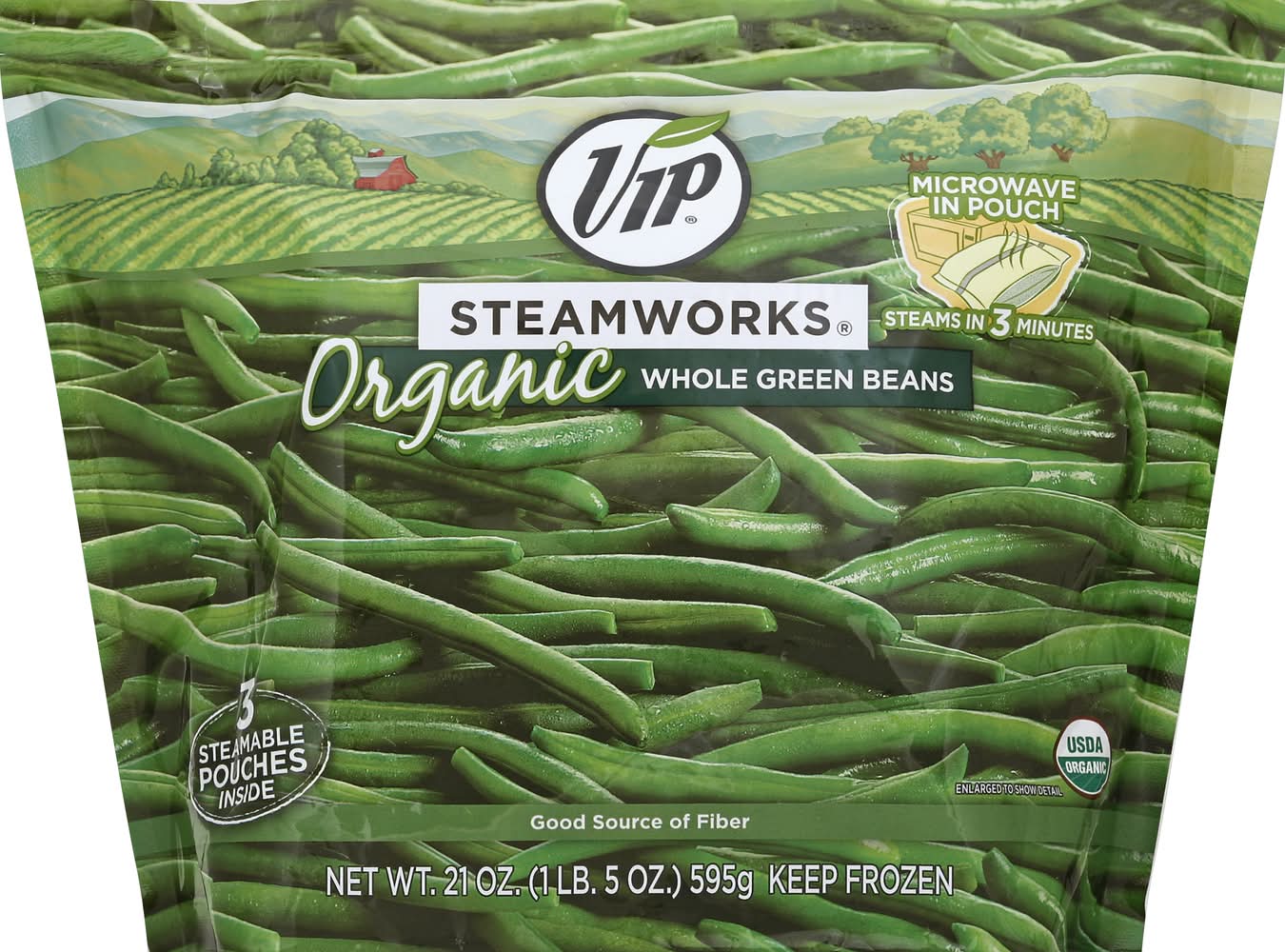 VIP Steam Work Organic Whole Green Beans (21 oz)
