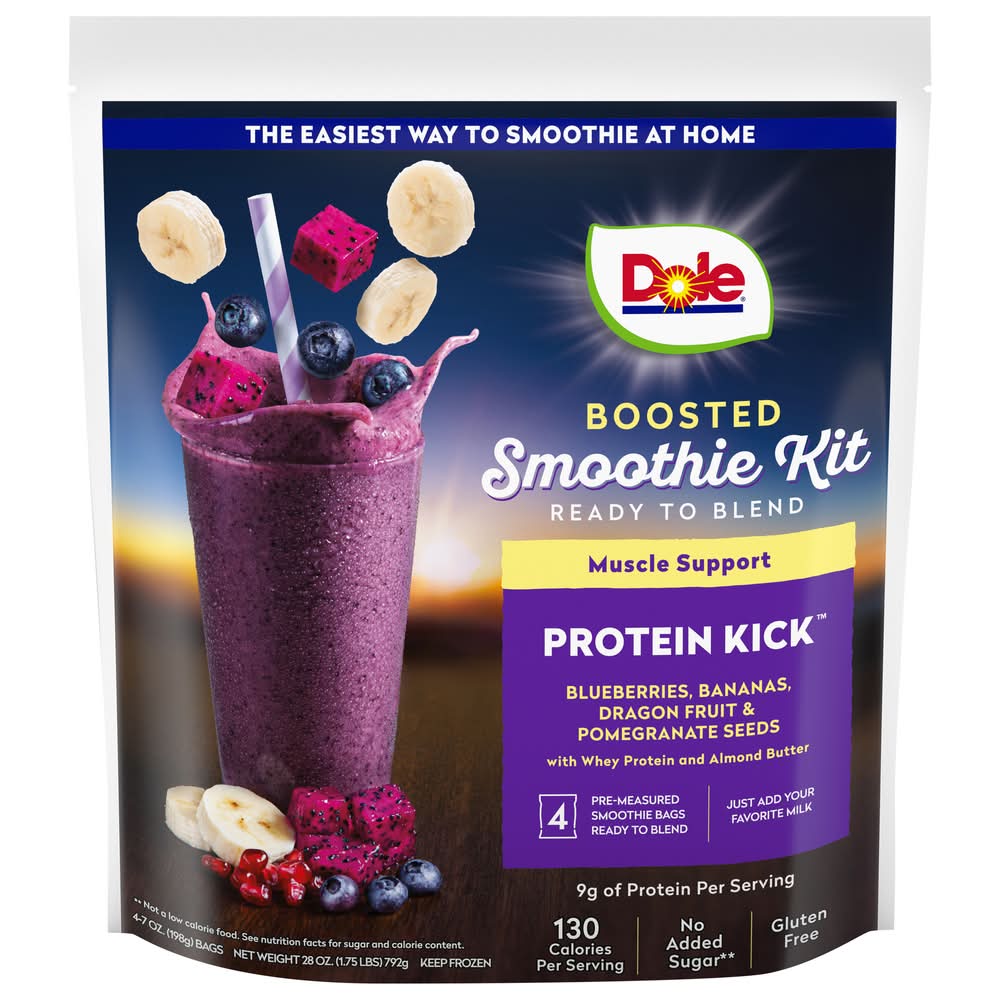 Dole Boosted Protein Kick Smoothie Kit Juice, Assorted (7 oz, 4 ct)