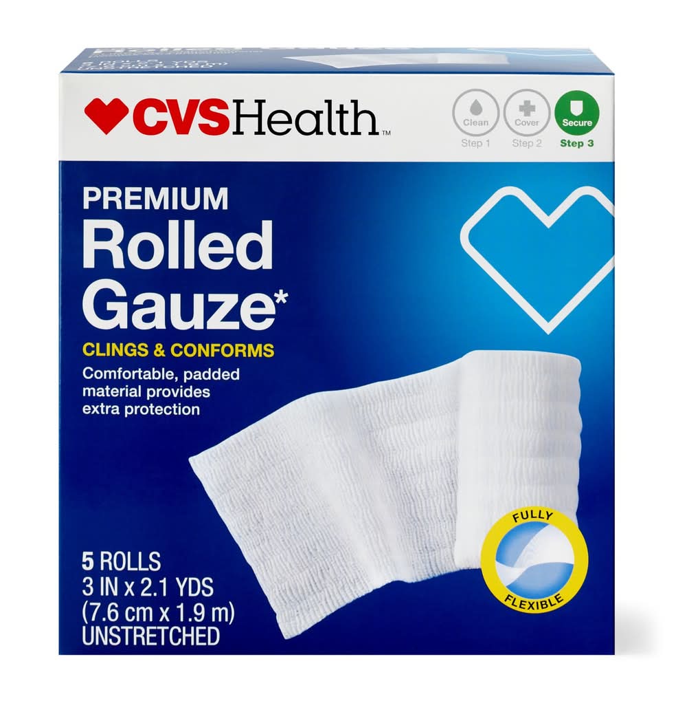 CVS Pharmacy Sterile Premium Rolled Gauze, 3 inch x 2.1 yd, White (5 ct)