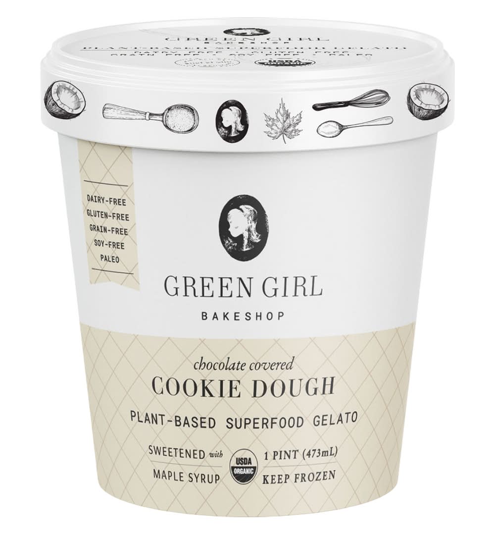 Green Girl Bakeshop Frozen Plant-Based Superfood Gelato, Chocolate Cookie Dough (1 pint)