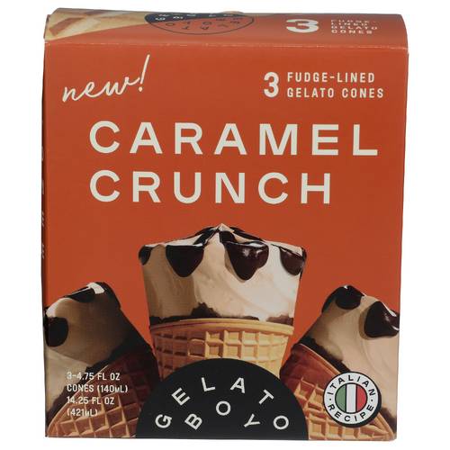 Gelato Boy Italian Caramel Crunch Fudge Lined Gelato Cones (3 x 4.75 fl oz)