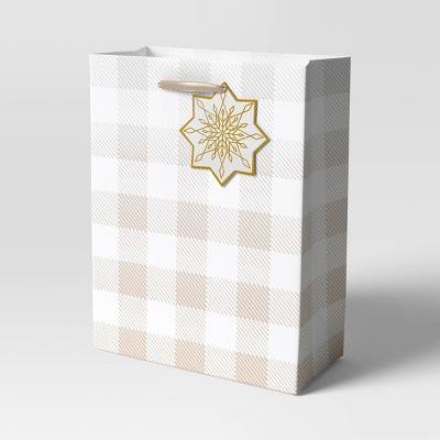 Wondershop Plaid Vogue Christmas Gift Bag, Extra Large, Gold-Gray