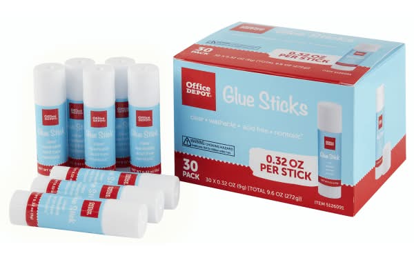 Office Depot Glue Sticks, Clear (30 x 0.32 oz)
