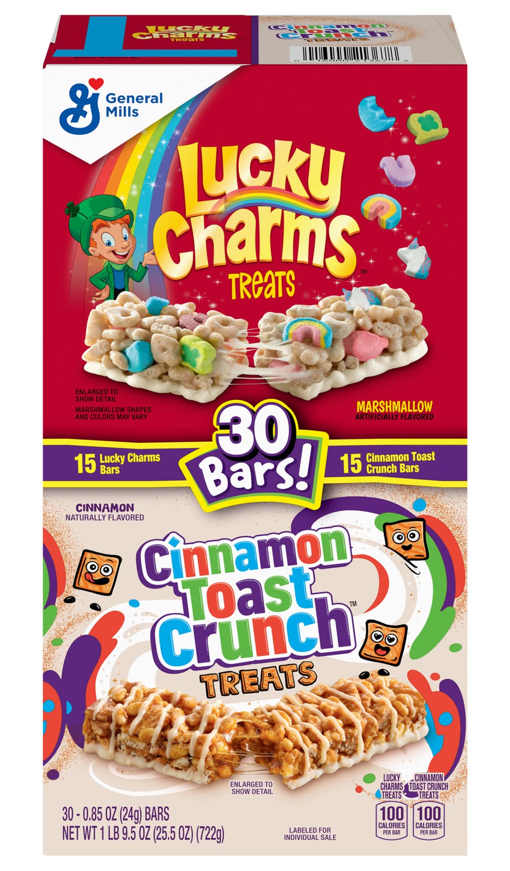 General Mills Cinnamon Toast Crunch and Lucky Charms Treat Bars Variety pack (25.5 oz, 30 ct)