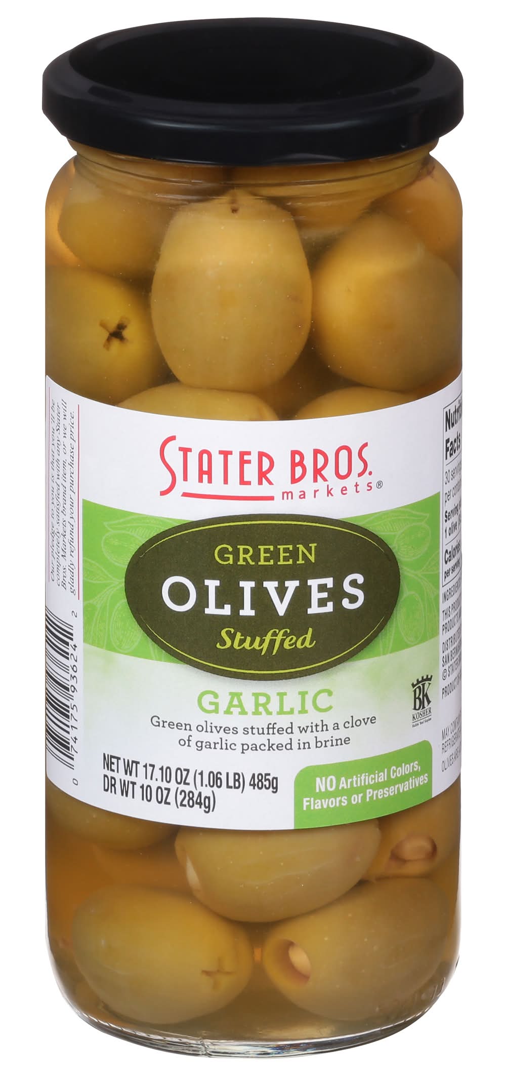 Stater Bros. Markets Green Olives Stuffed, Garlic (17.1 oz)