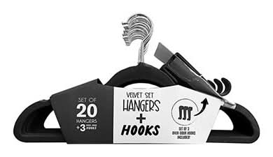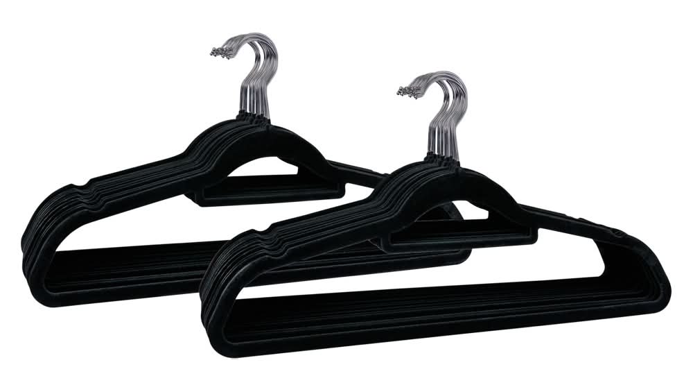 Home Essentials Velvet Slim Hangers With Hooks, Black (20 ct)
