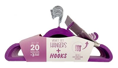 Home Essentials Lilac Ombre Velvet Slim Hangers With Hooks (20 ct)