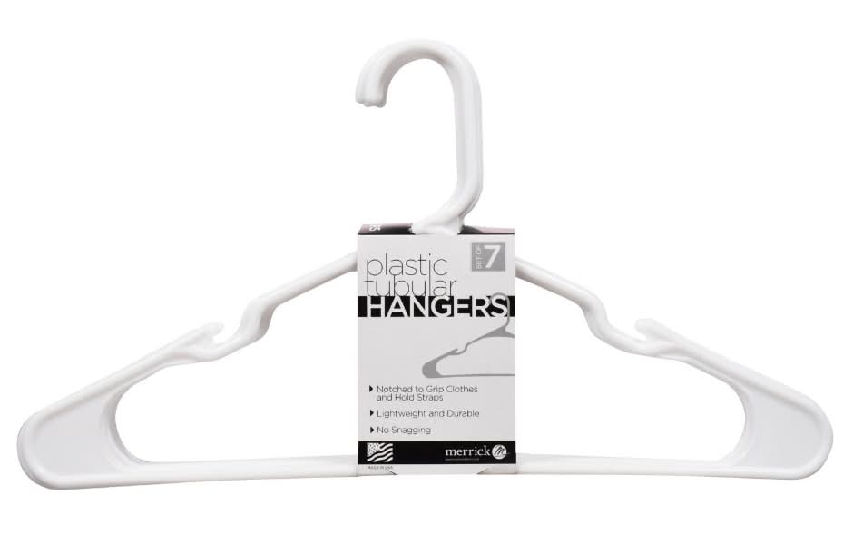 Merrick Plastic Tubular Hangers, White (7 ct)