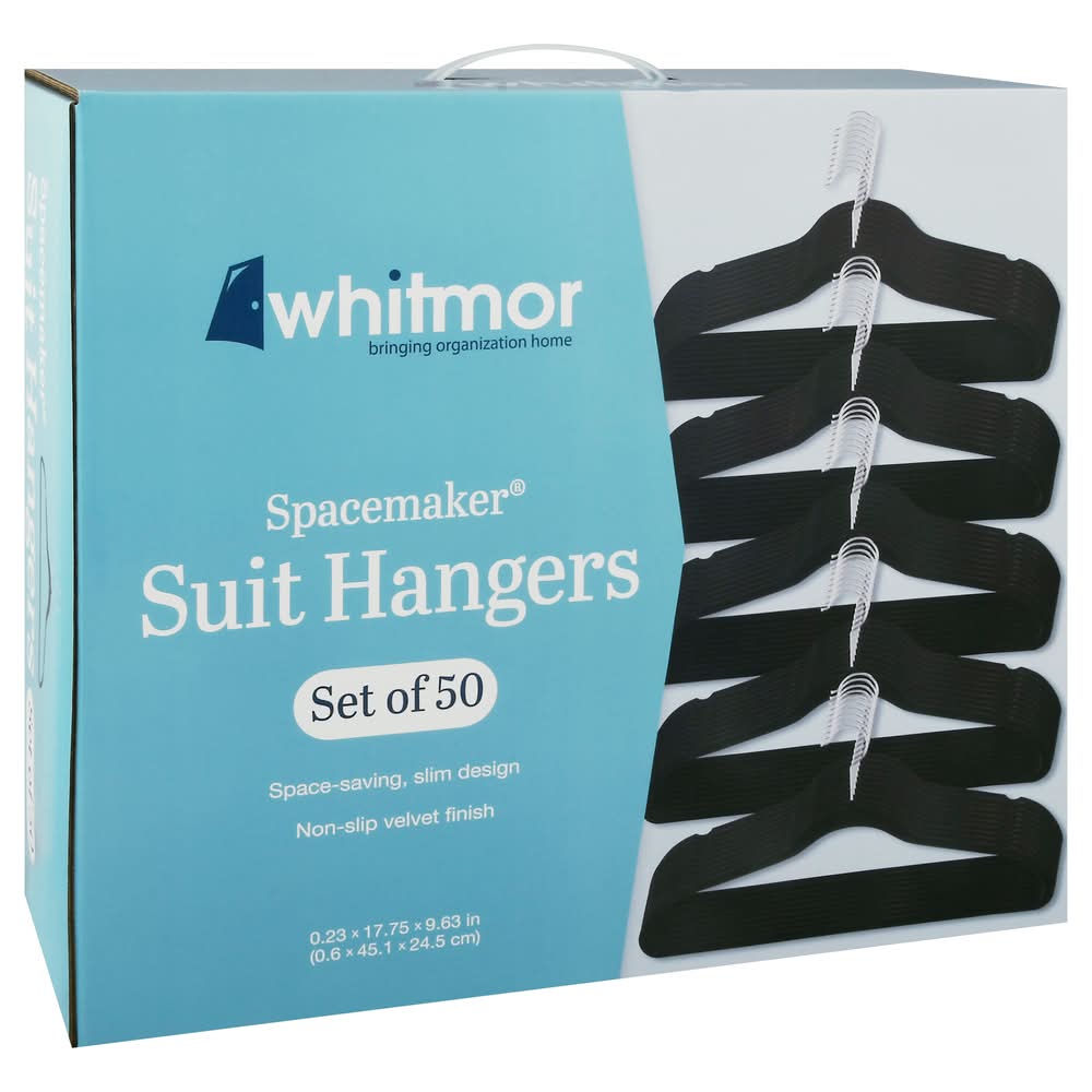 Whitmor Spacemaker Suit Hangers, 9.63 in, Black (59.9 g, 50 ct)