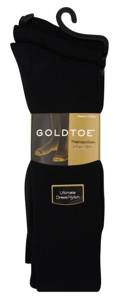 Gold Toe Ultimate Dress Nylon Socks, Shoe Size: 6 to 12-1/2, Black (3 ct)