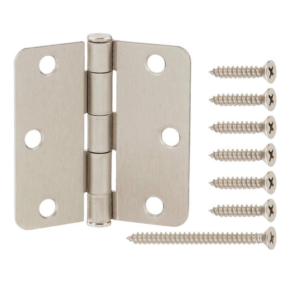 Hillman Hardware Essentials Round Corner Satin Nickel Door Hinges, 5/8 In (3 ct)