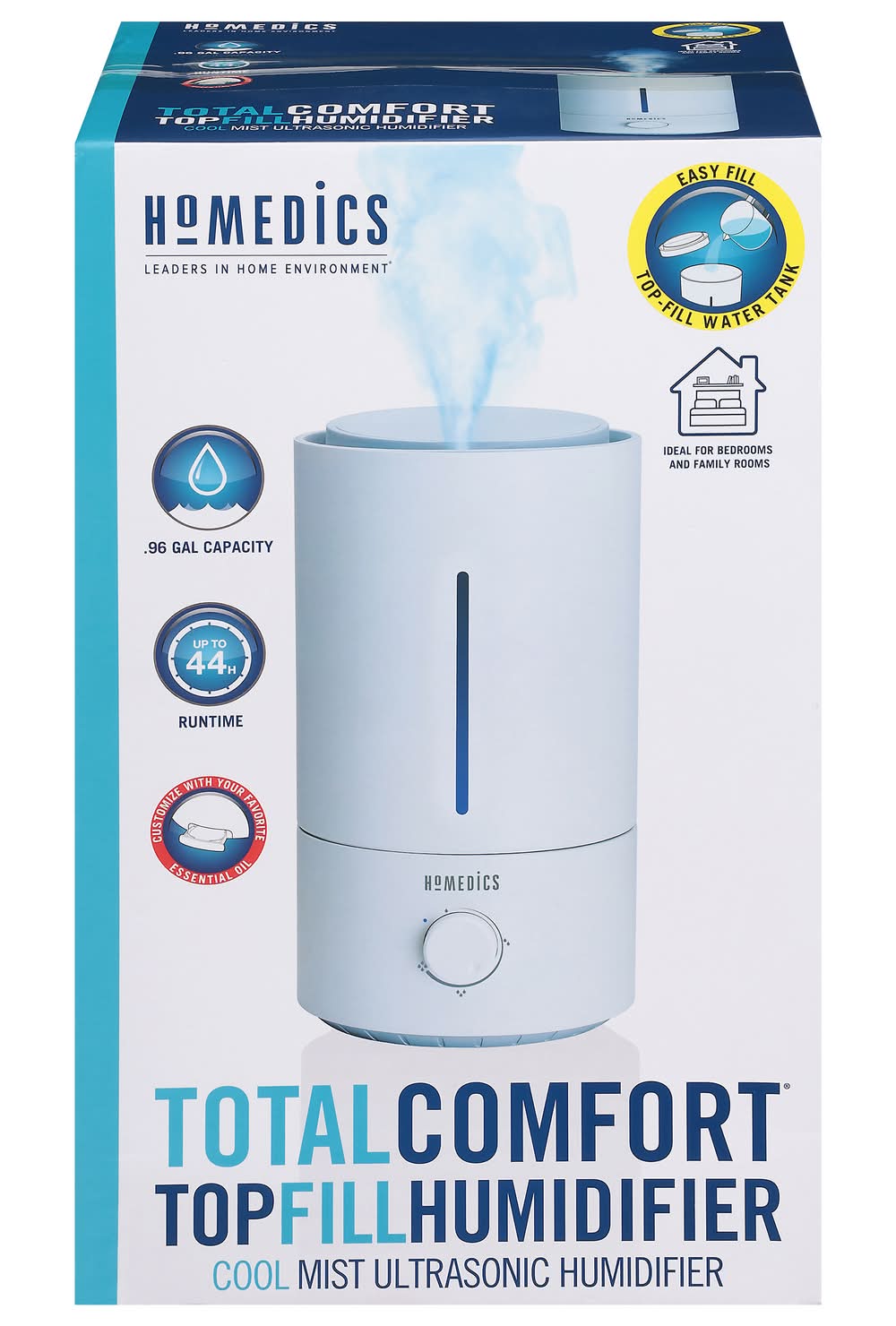 Homedics Total Comfort Top Fill Ultrasonic Humidifier 0.96 Gal, White