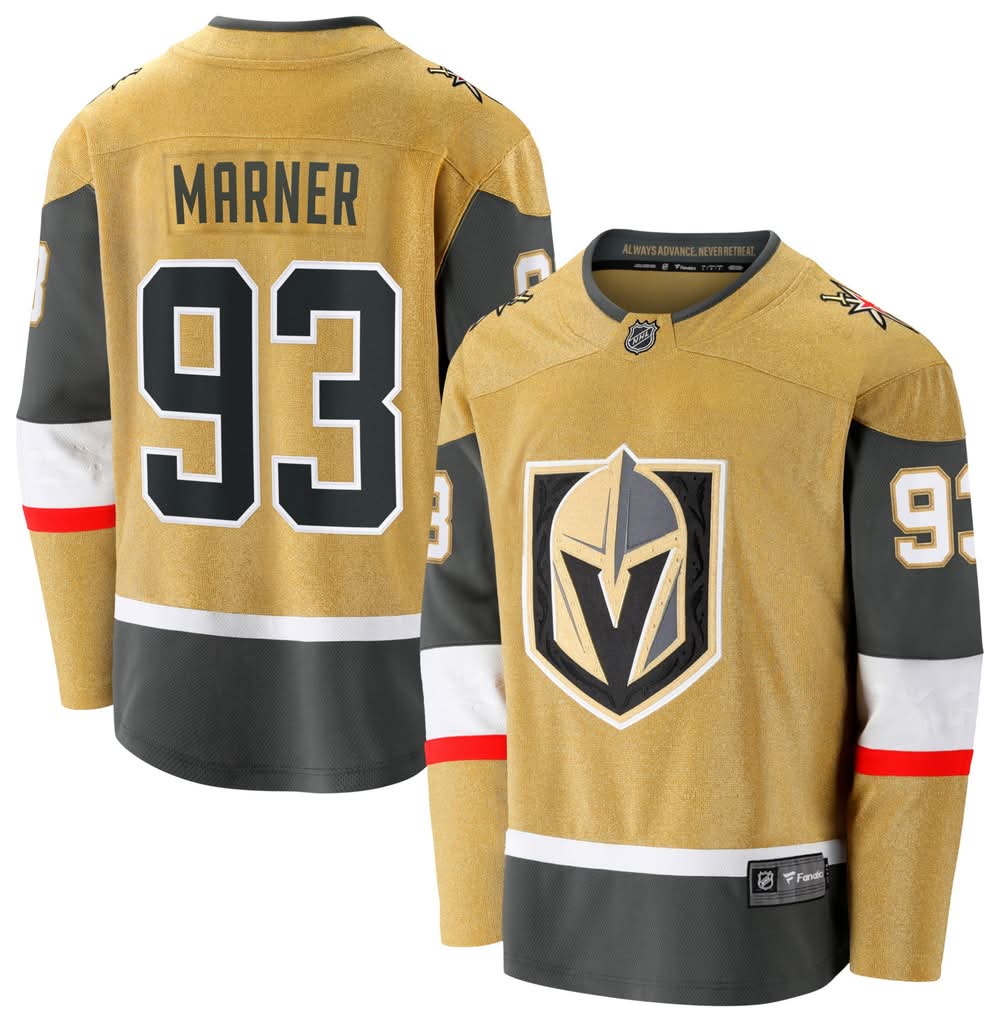 Fanatics Vegas Golden Knights Mitch Marner 93 Breakaway Home Replica Jersey, Men, M, Gold