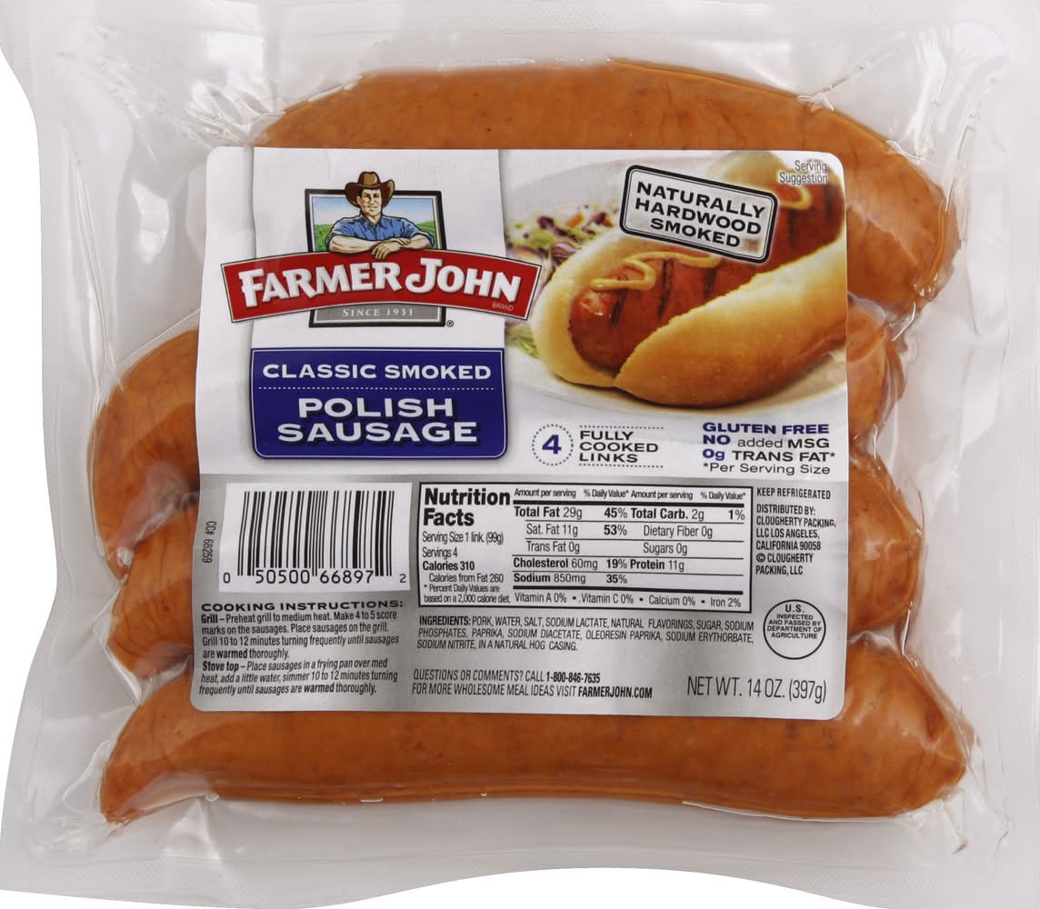 Farmer John Classic Smoked Polish Sausage (14 oz, 4 ct)