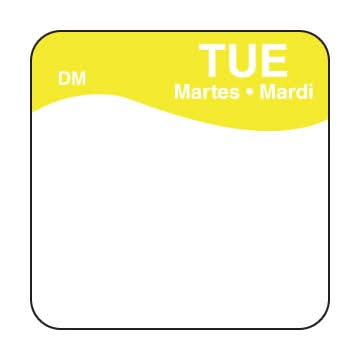 DayMark Square Dissolvemark Tuesday Day Of the Week Sysco Label, 1x1 in (500 ct)