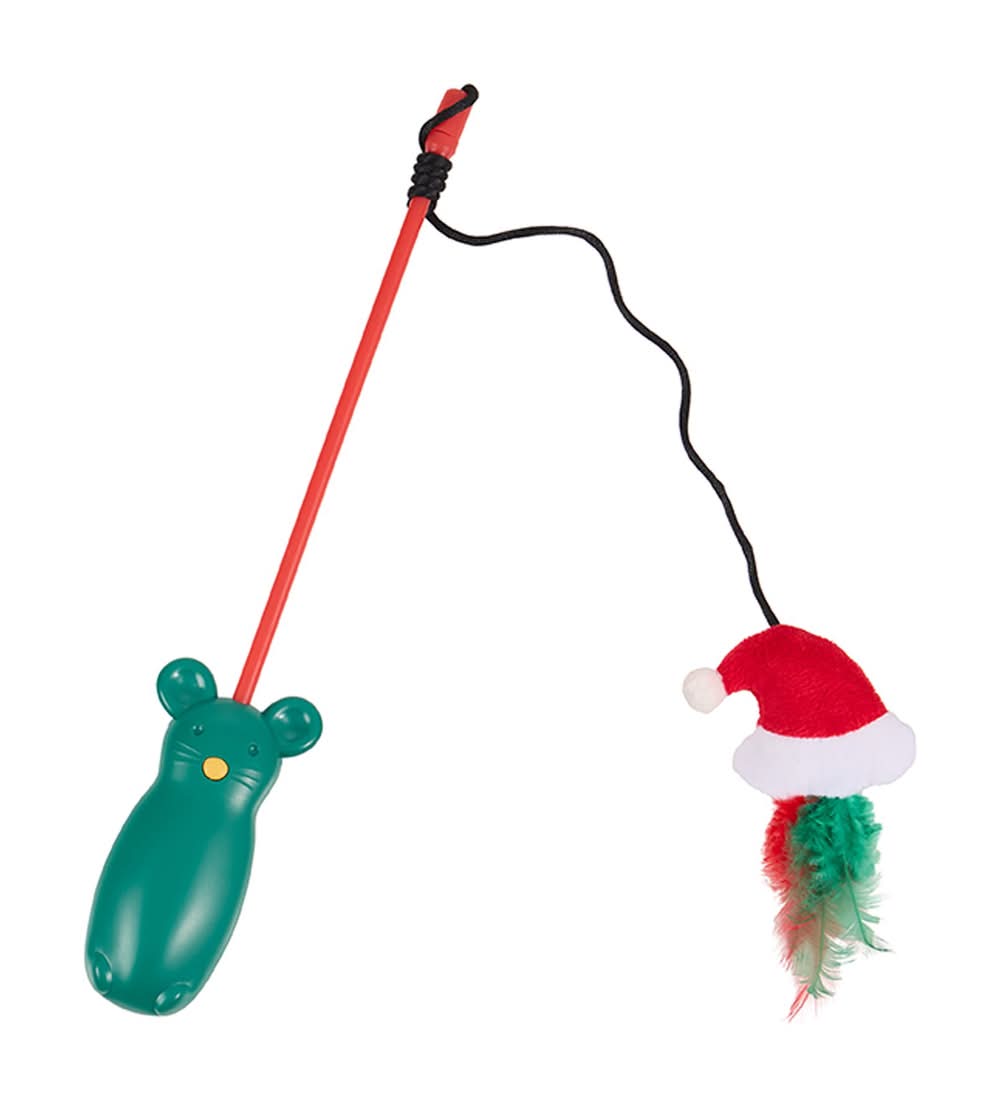 Merry & Bright Holiday Cat Teaser With Laser, Red