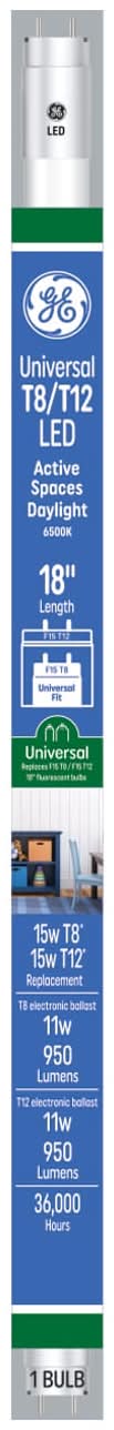 General Electric Eq T8 Daylight Medium Bi-Pin Base Led Tube Light Bulb 15w