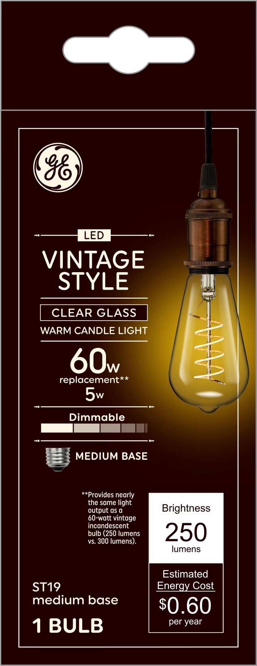 General Electric Vintage Style Medium Base Dimmable Led Decorative Light Bulb 60w