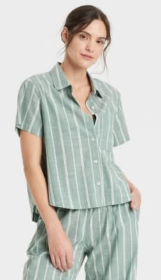 Auden Striped Cotton Blend Short Sleeve Pajama Shirt, Women, S, Green