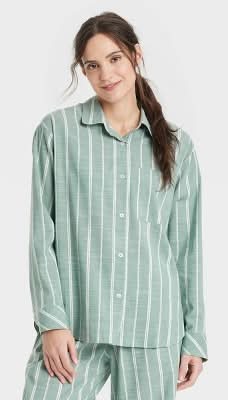 Auden Striped Cotton Blend Long Sleeve Pajama Shirt, Women, L, Green