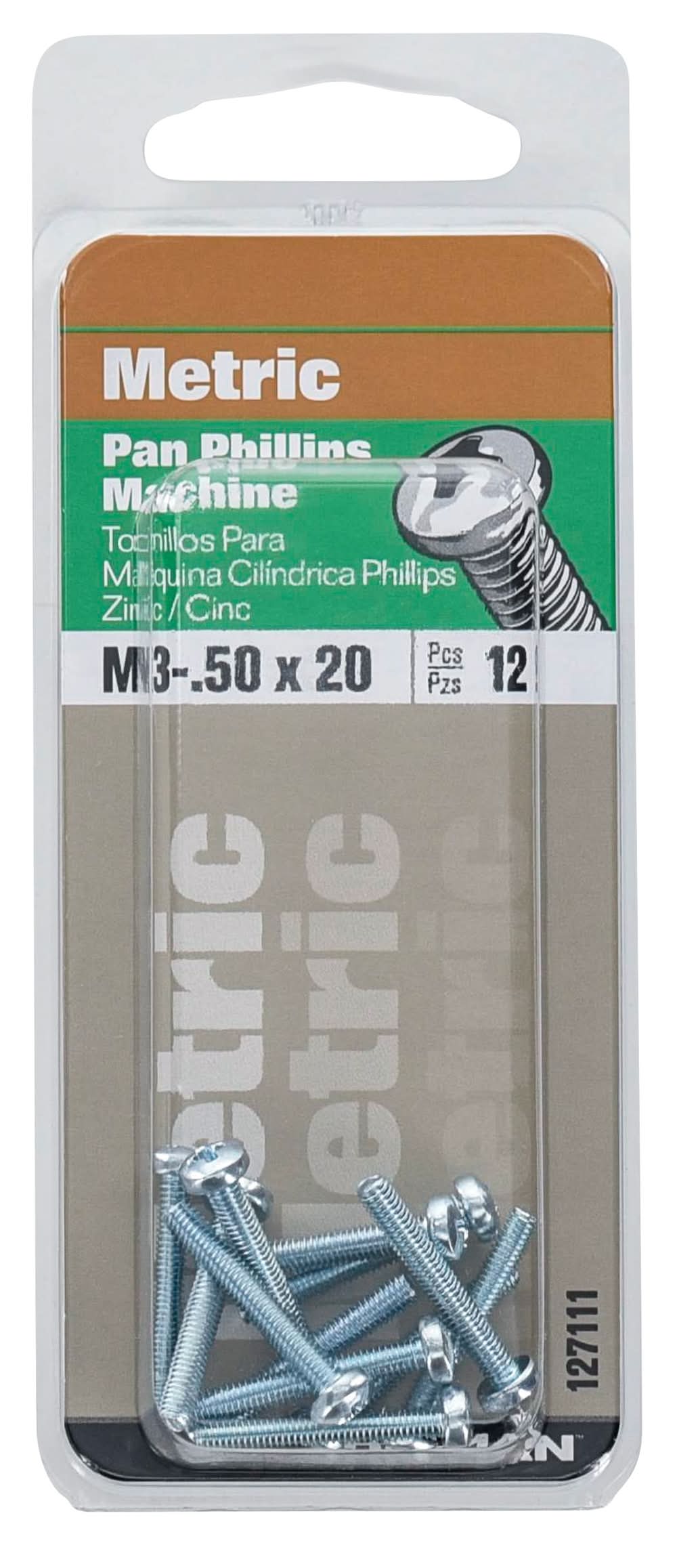 Hillman Zinc Plated Pan Head Phillips Drive Machine Screw, 3-0.5x20 mm (12 ct)