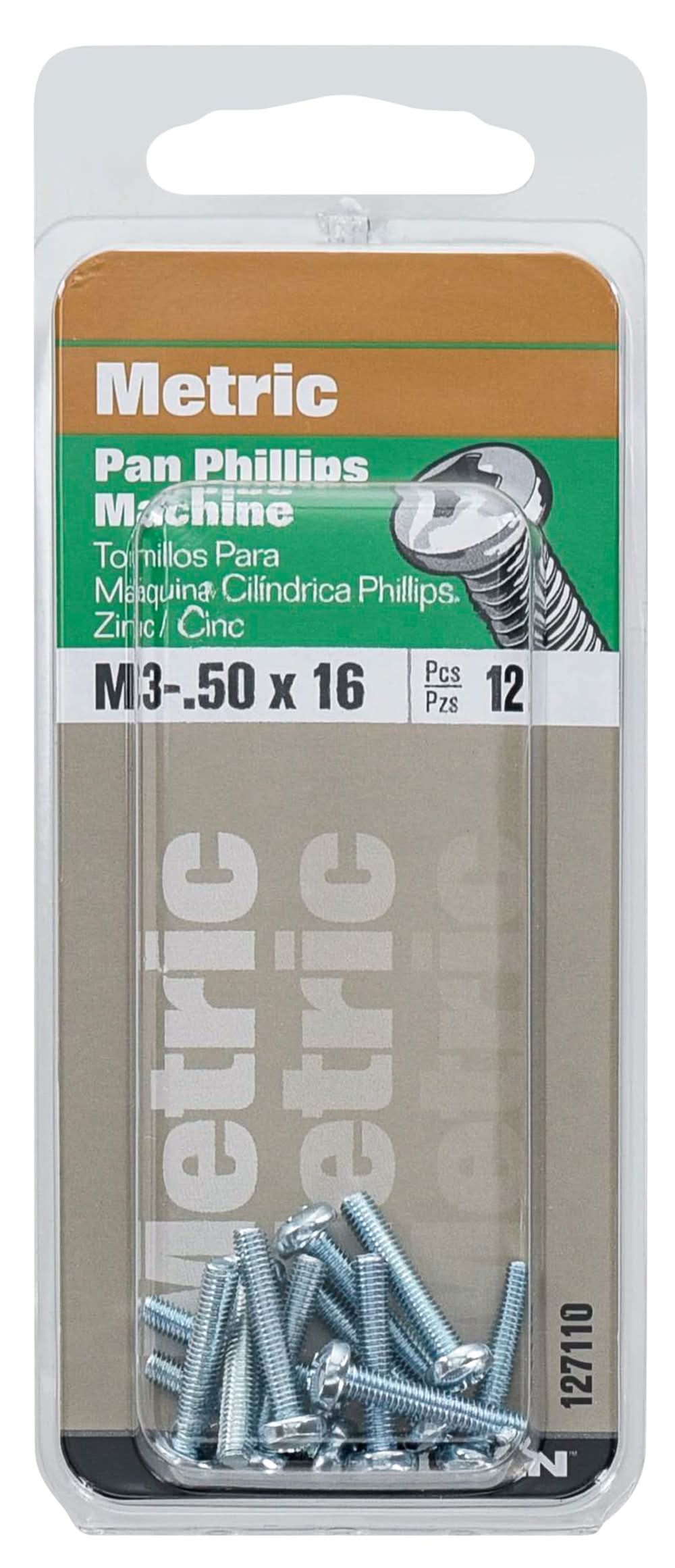 Hillman Metric Pan Head Phillips Machine Screws, M3-0.50x16 mm (12 ct)