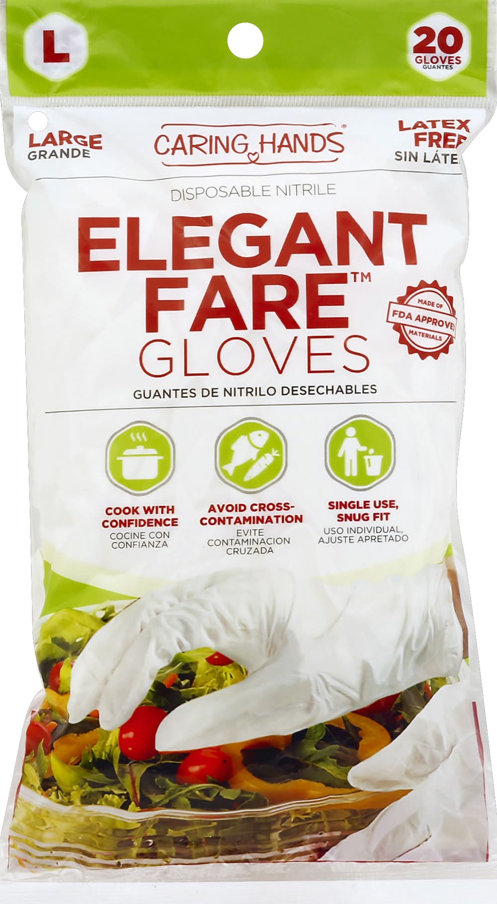 Caring Hands Elegant Fare Large Disposable Nitrile Gloves (6.4 oz)
