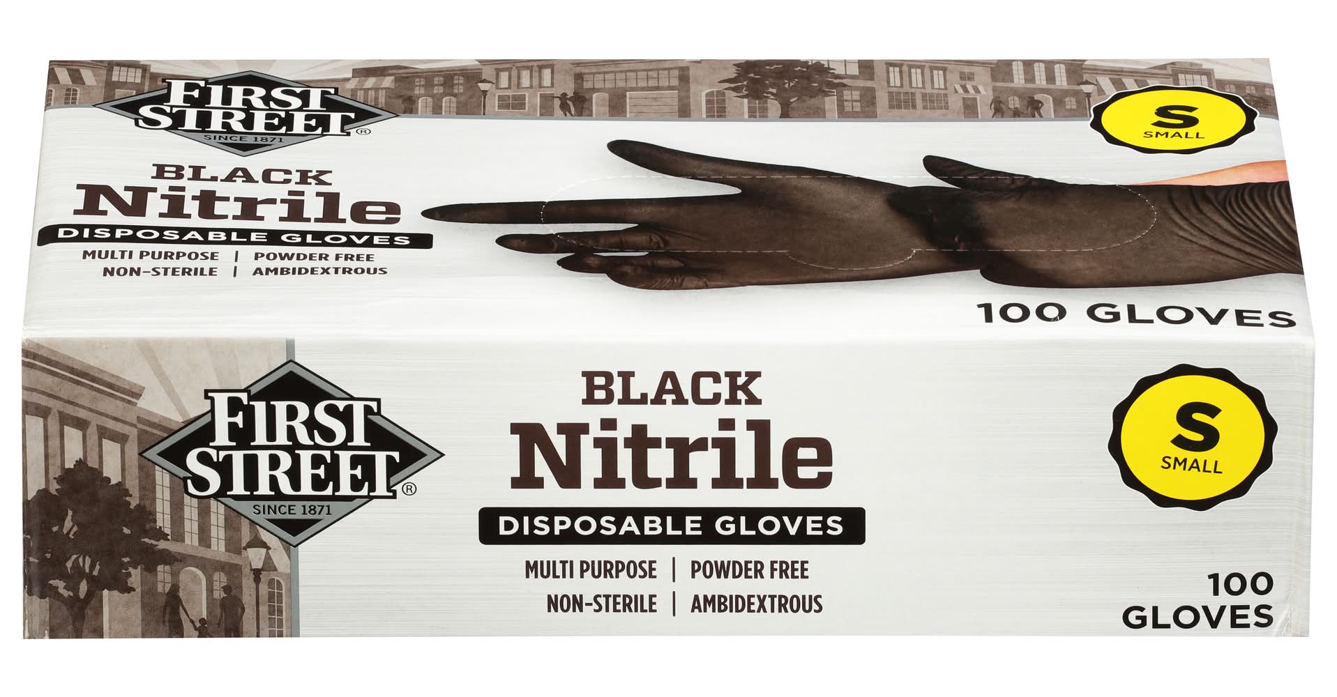 First Street Nitrile Disposable Gloves, Small, Black (100 ct)