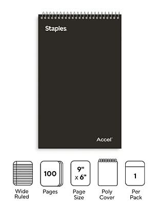 Staples Accel Top-Bound 2-subject Pocket Wide Ruled Notebook, 6" x 9.5", Black