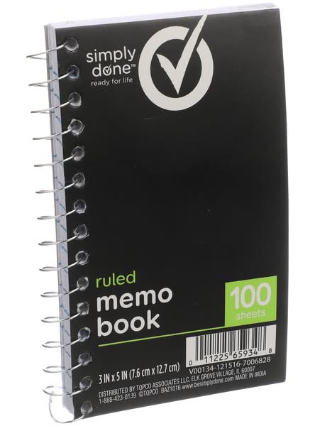 Simply Done Ruled Memo Book 100 Sheets, 3 in x 5 in