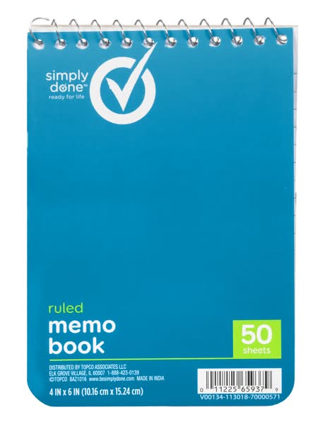 Simply Done Ruled Memo Book, 3x5 in