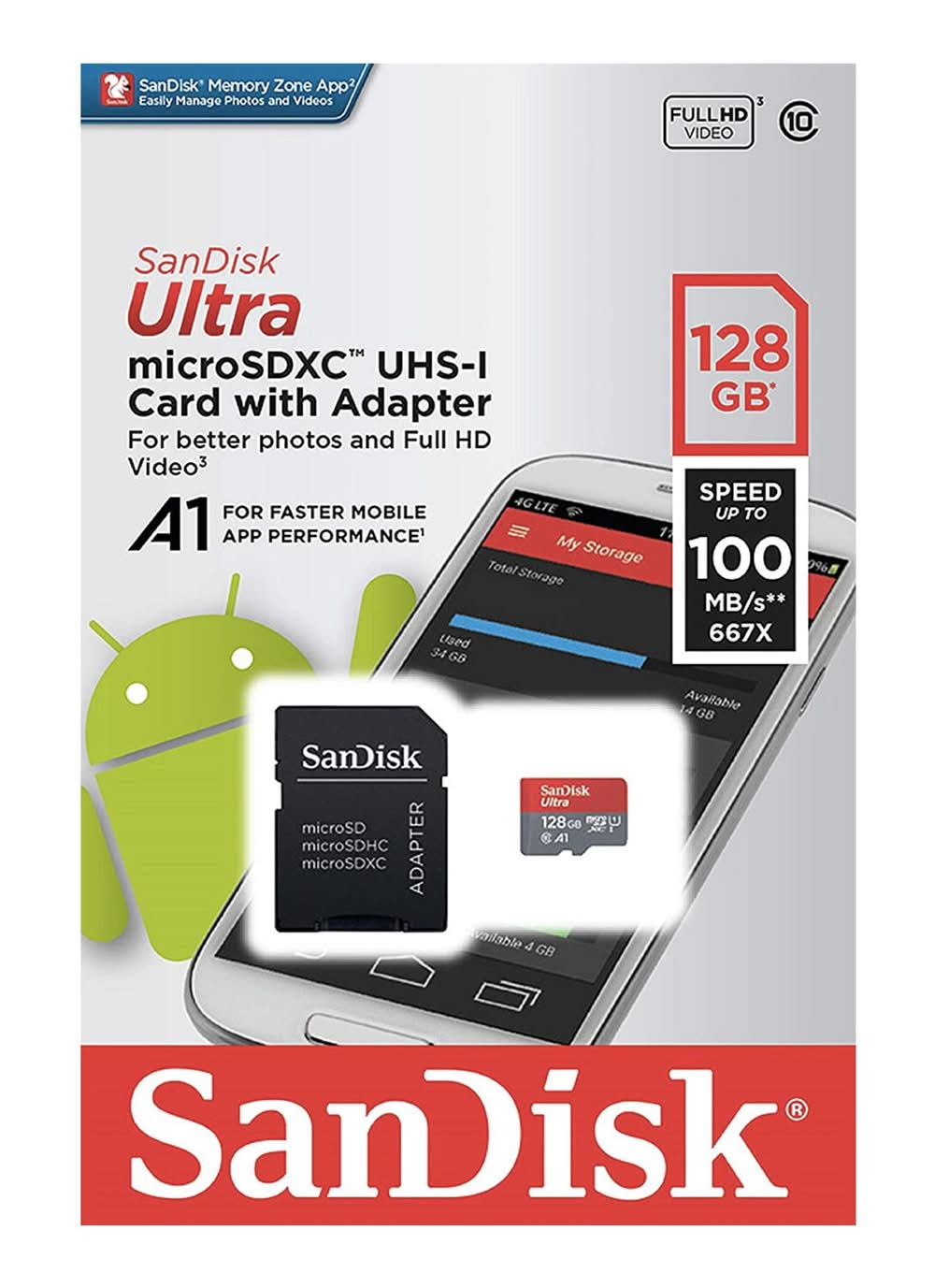 SanDisk 128 Gb Ultra Micro Sd Memory Card With Adapter, Red-Gray