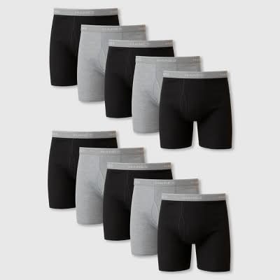 Hanes Super Value Moisture-Wicking Cotton Boxer Briefs, Men, M, Black-Grey (10 ct)