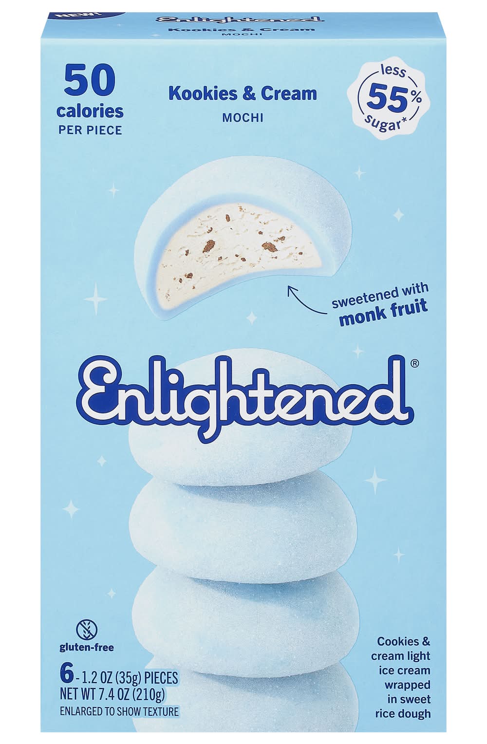 Enlightened Mochi Kookies & Cream Ice Cream, Monk Fruit (1.2 oz, 6 ct)
