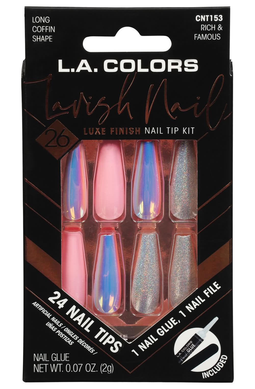 L.A. Colors Lavish Nail Rich & Famous Long Coffin Shape Nail Tip Kit, Multicolor (24 ct)