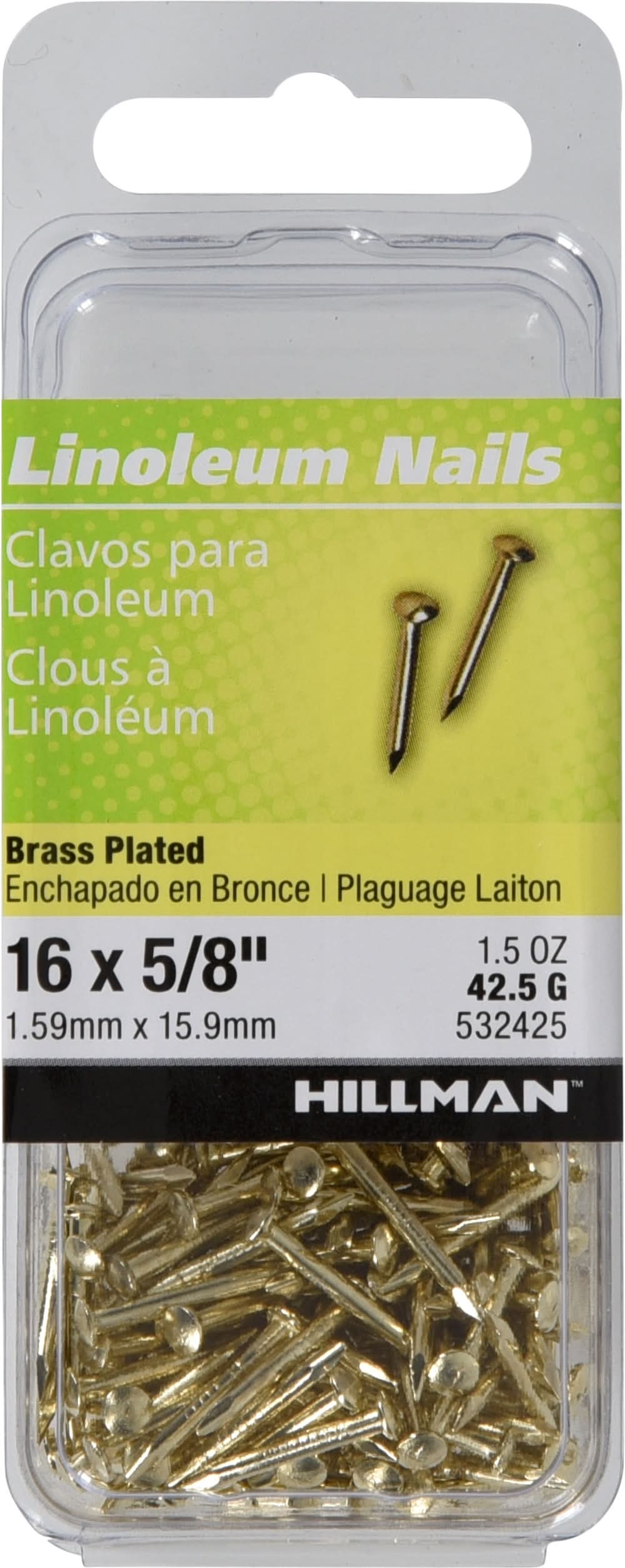 Hillman Brass Plated Smooth Shank Linoleum Nails 16 Gauge, 5/8 in