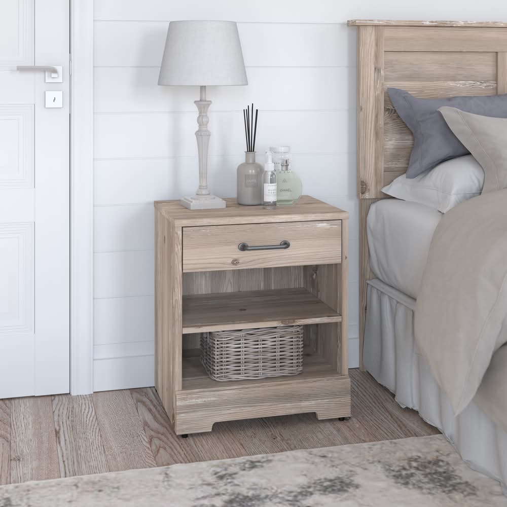 Bush Furniture River Brook Nightstand With Drawer, Barnwood