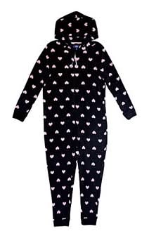 PJ Essentials Womens Hearts Hooded Onesie Pajama, S, Black & Pink
