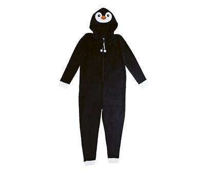 Party Essentials Women's Penguin Hooded Onesie Pajama, X-Large, Black