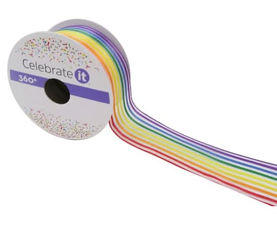 Celebrate It Rainbow Striped Wired Sheer Ribbon, 1.5" X 3Yd