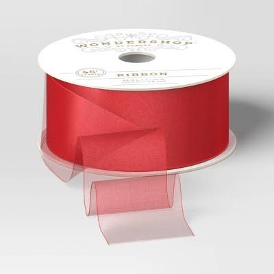 Wondershop 1.5" Sheer Fabric Christmas Ribbon, 45', Red
