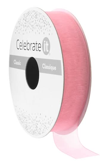 Celebrate It Classic Chiffon Ribbon, 5/8 in x 7yd, Pink